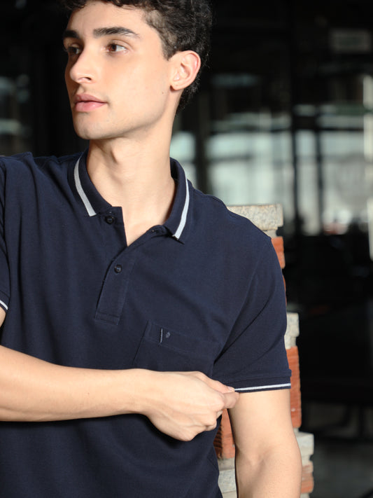 NAVY MEN'S HALF SLEEVE COLLAR T-SHIRT